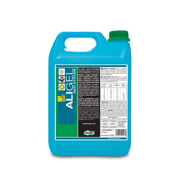Anticongelante puro, permanente, a base di GLICOLE MONOPROPILENICO per impieghi nel CAMPO ALIMENTARE, inibito verso la corrosione. Consigliato per impianti solari termici secondo Norma UNI 8065:2019.