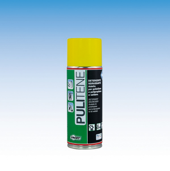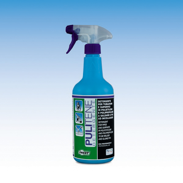 Speciale solvente in flacone con spruzzatore per la pulizia del polietilene e polipropilene a saldare e PVC a incollaggio