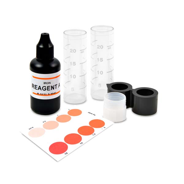 Questo kit serve a determinare il tenore di ferro nelle acque di impianto e nelle acque potabili da 0,01 mg/lt (ppm) e fino a 15 ppm.